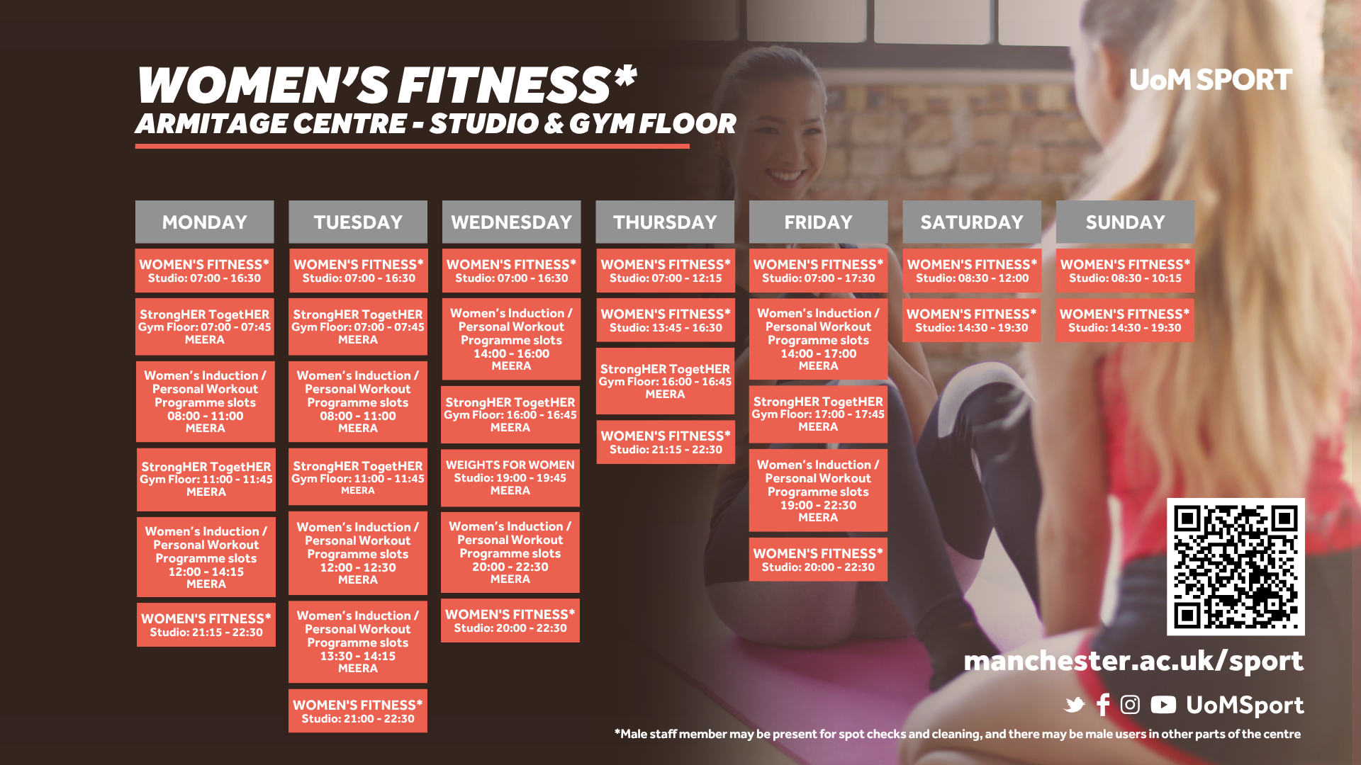 - Two convenient locations – Armitage Sports Centre (Fallowfield) and the Wellbeing Studios (Simon Building, Oxford Road)